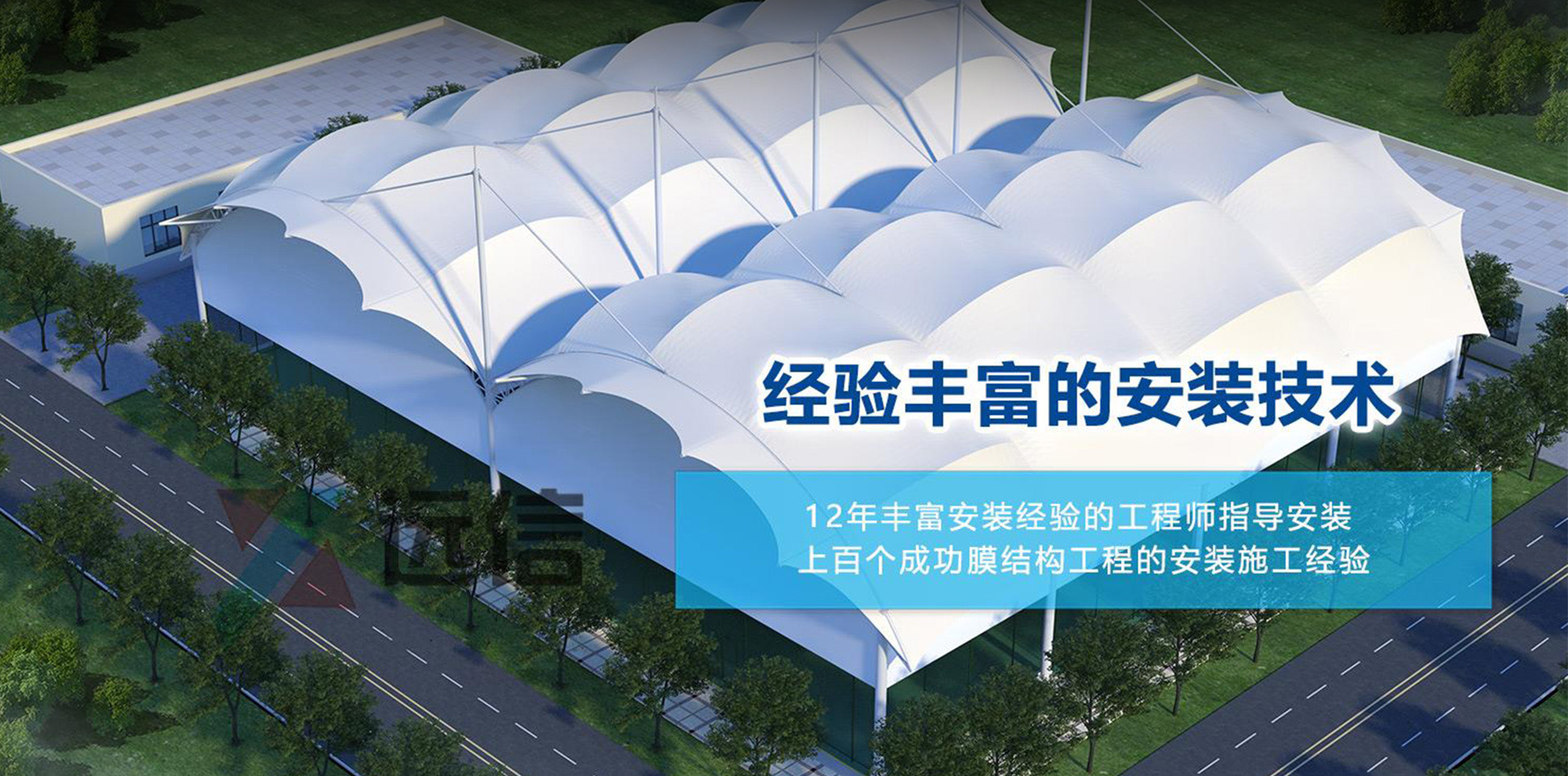 3.從結(jié)構(gòu)設(shè)計(jì)上降低膜材安裝難度選用膜材均為國(guó)產(chǎn)或進(jìn)口優(yōu)質(zhì)膜材料,高強(qiáng)拉力,優(yōu)質(zhì)抵抗老化涂層